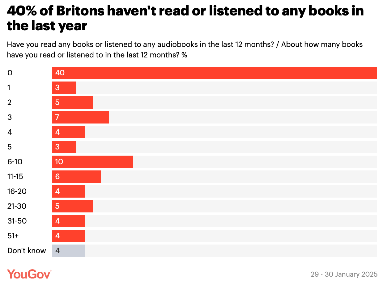 So instead of searching with intent, we drift and scroll. Instead of deep reading, with full focus, we skim (if we’re even reading at all - see the rather depressing findings from YouGov’s recent poll on adult reading habits from March 2025, and the National Literacy Trust’s report that children are, for the first time, listening to books more than they are actually reading them)